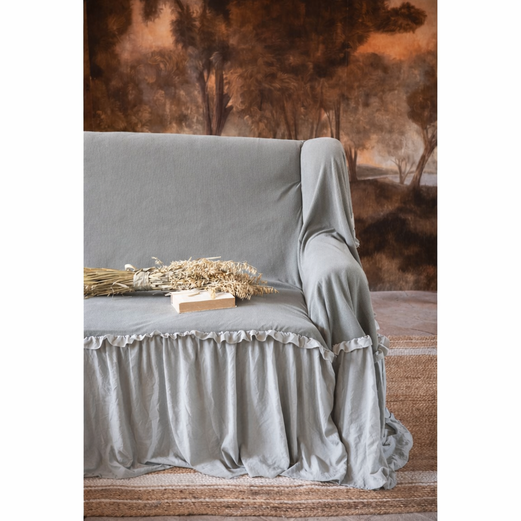 Kaipaako sohvasi päivitystä? Tässä superhelppo ja nopea kasvojenkohotus romanttisella kauniilla röyhelöisellä frilla-helmalla.